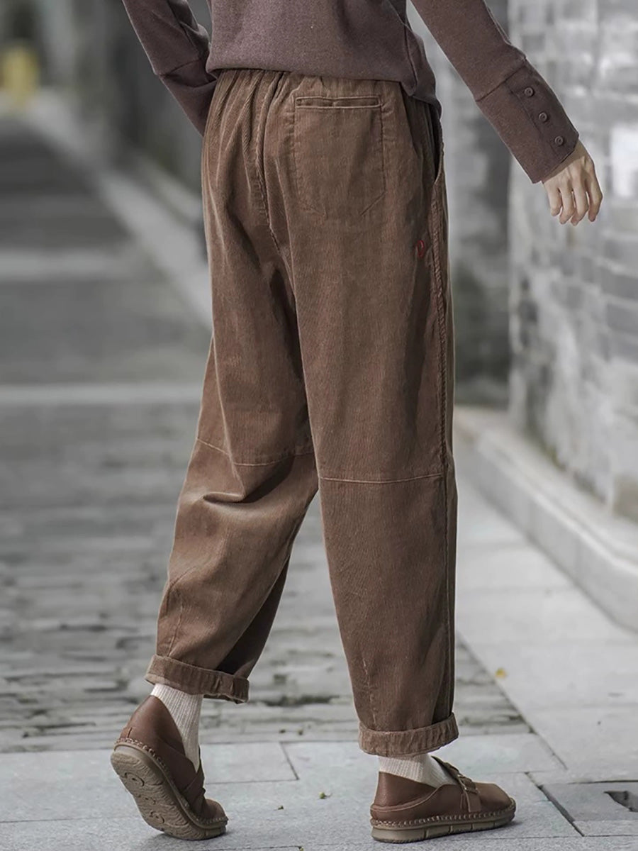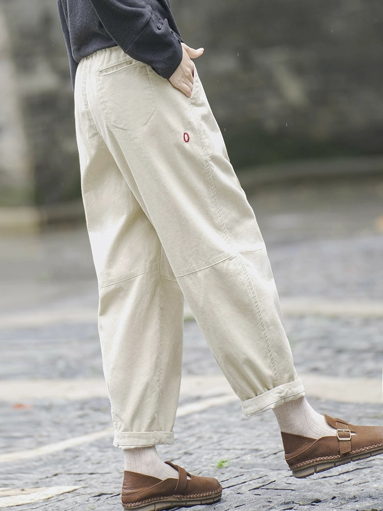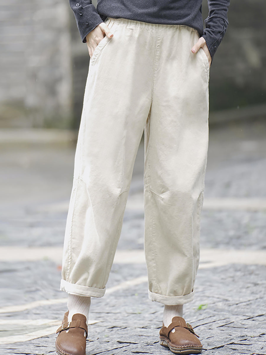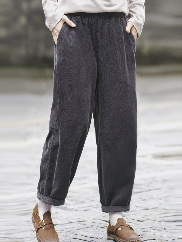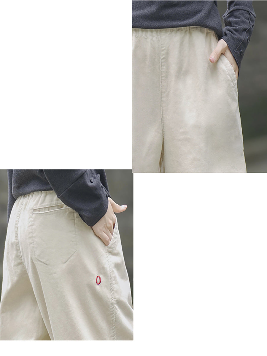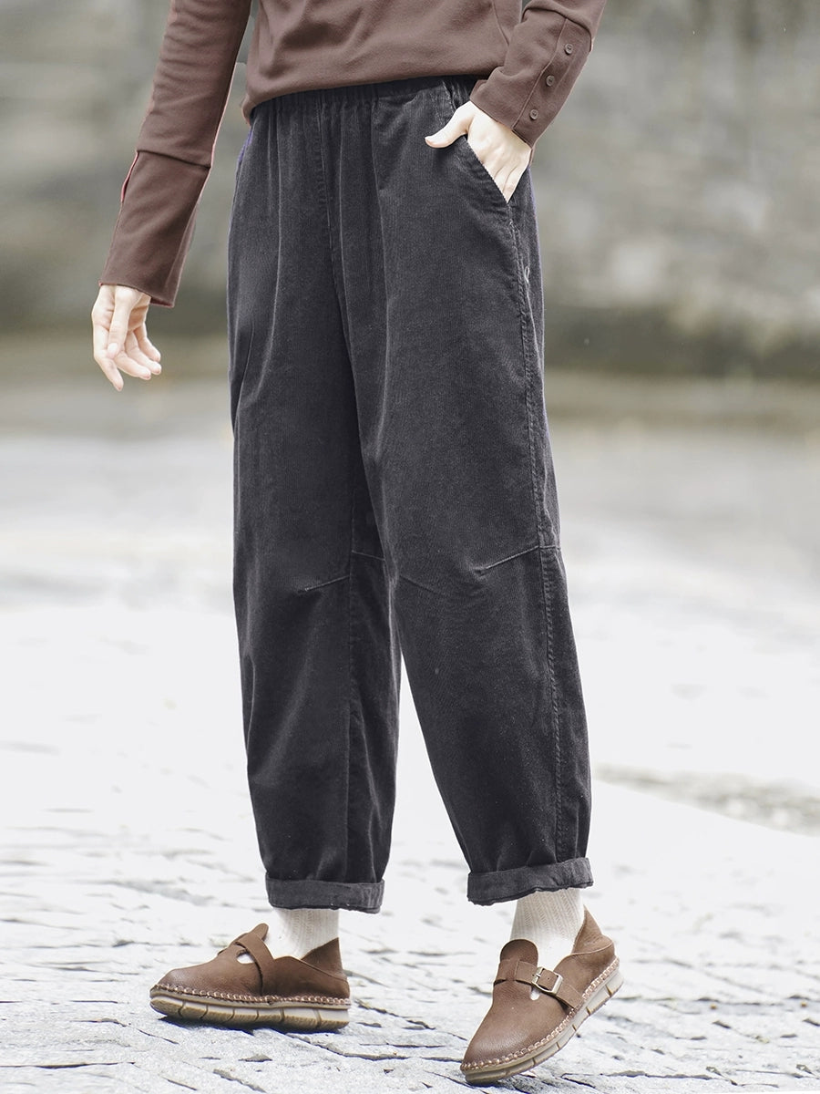 レディース 冬 レトロ ピュアカラー コーデュロイ 太もも ハーレムパンツ