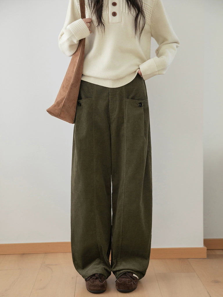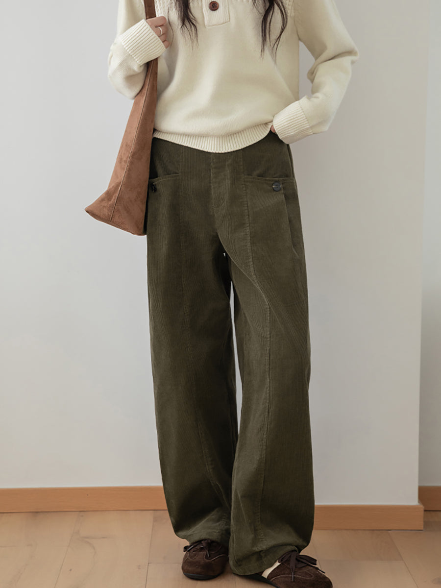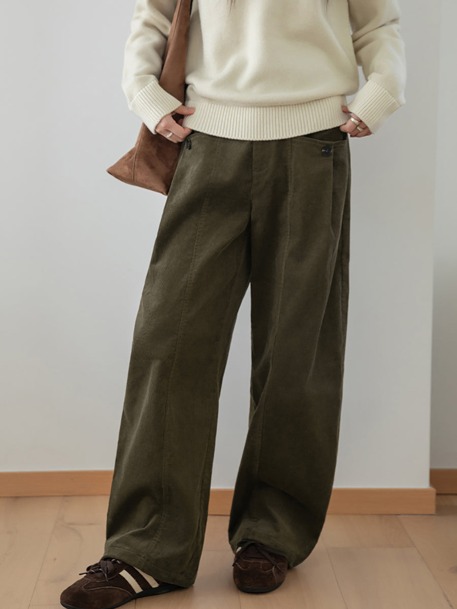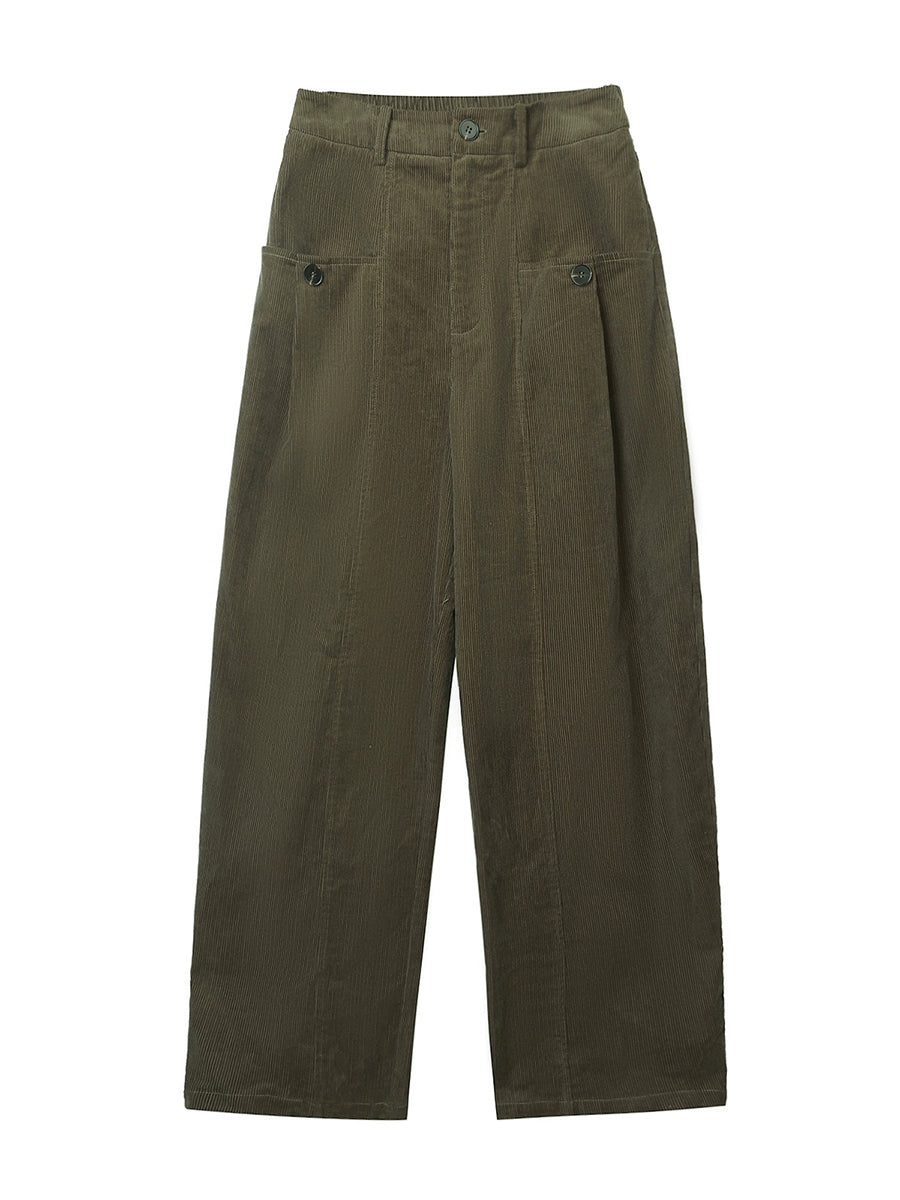 レディース 冬 レトロ ピュアカラー コーデュロイ ワイドレッグパンツ