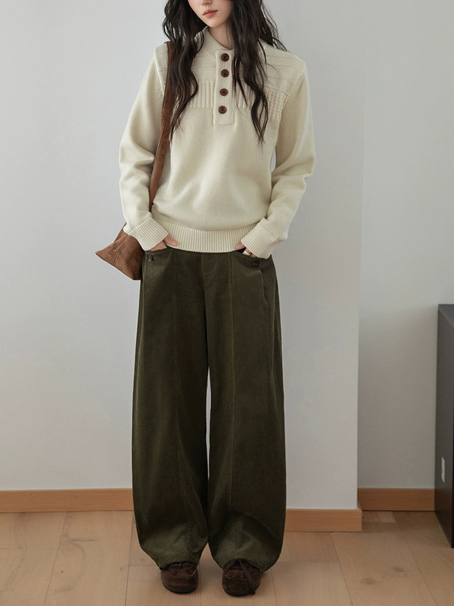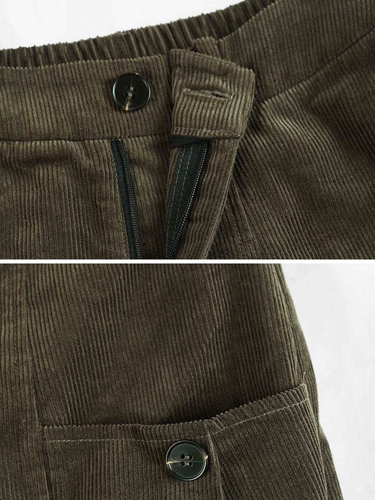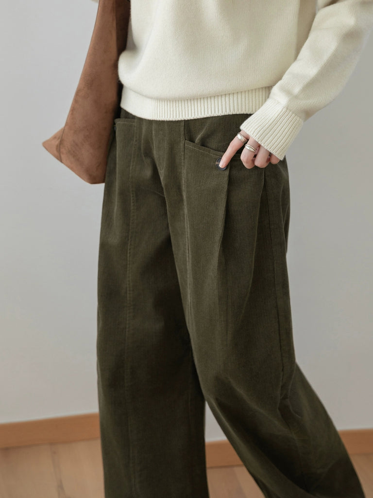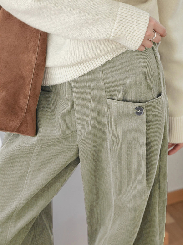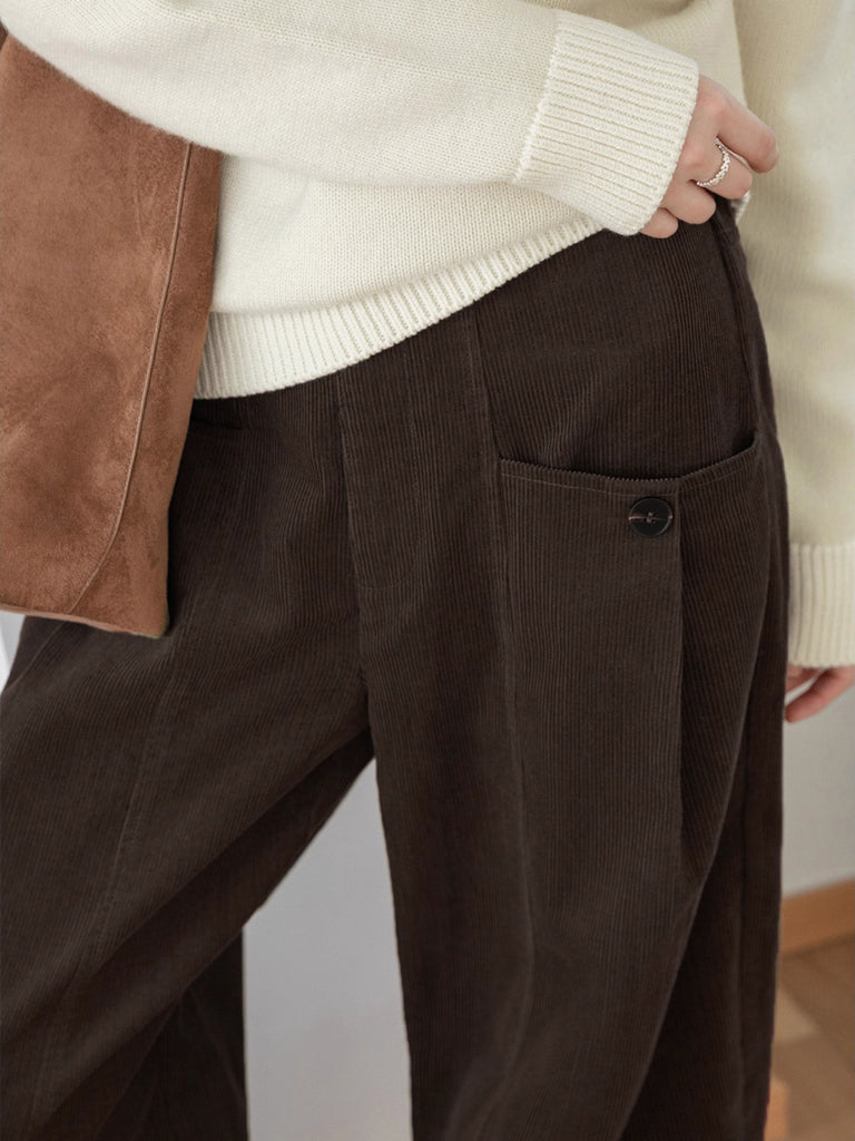 レディース 冬 レトロ ピュアカラー コーデュロイ ワイドレッグパンツ