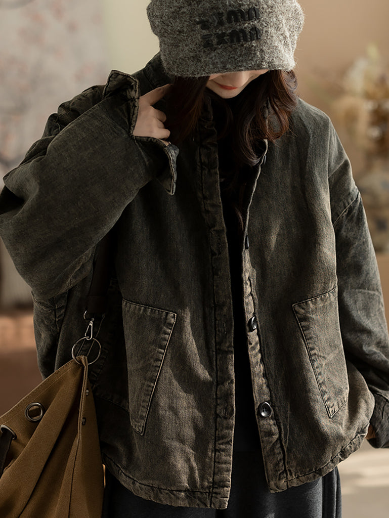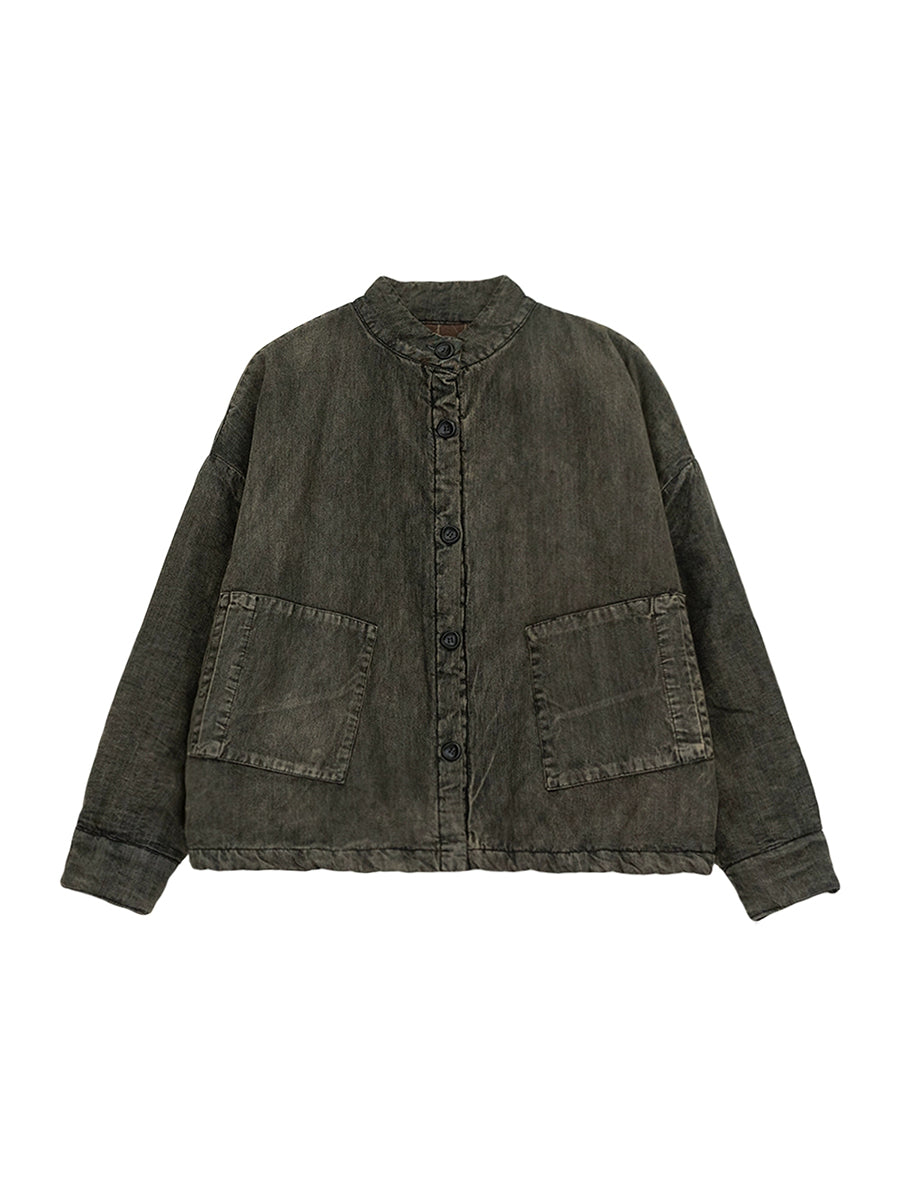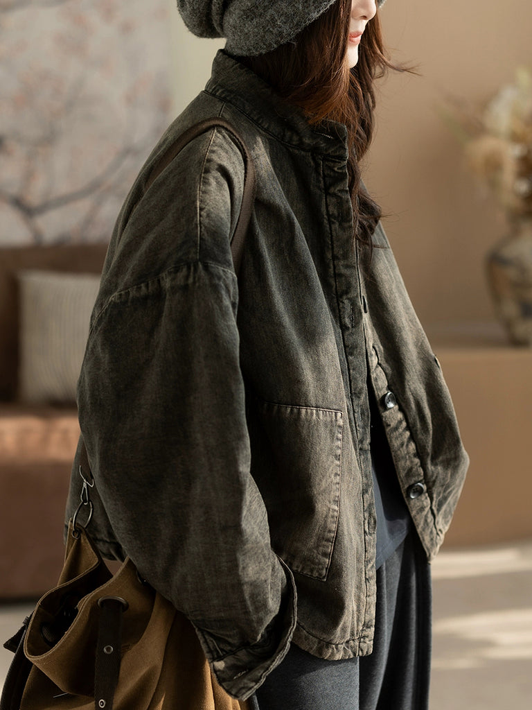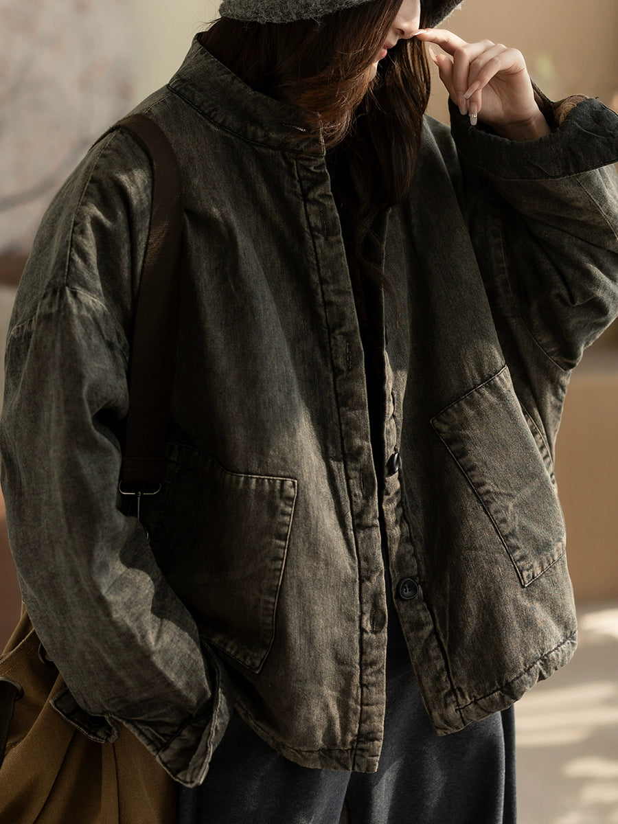 レディース 冬 レトロ ピュアカラー スタンドカラー パッド入りコート