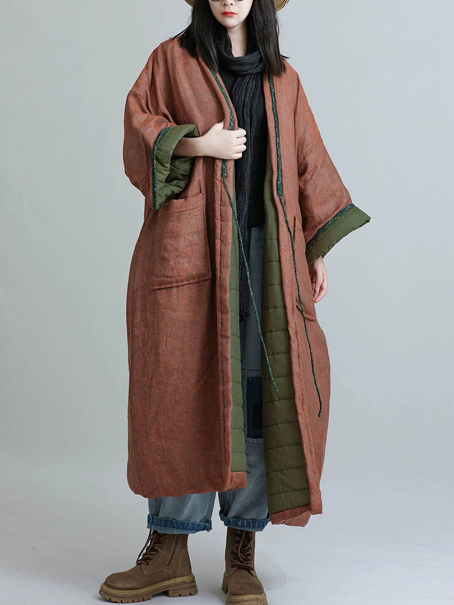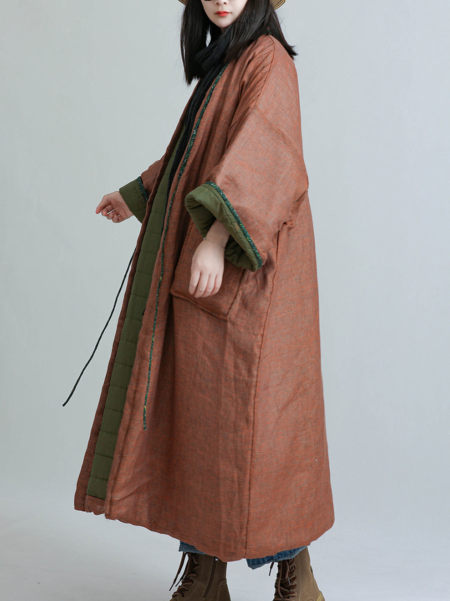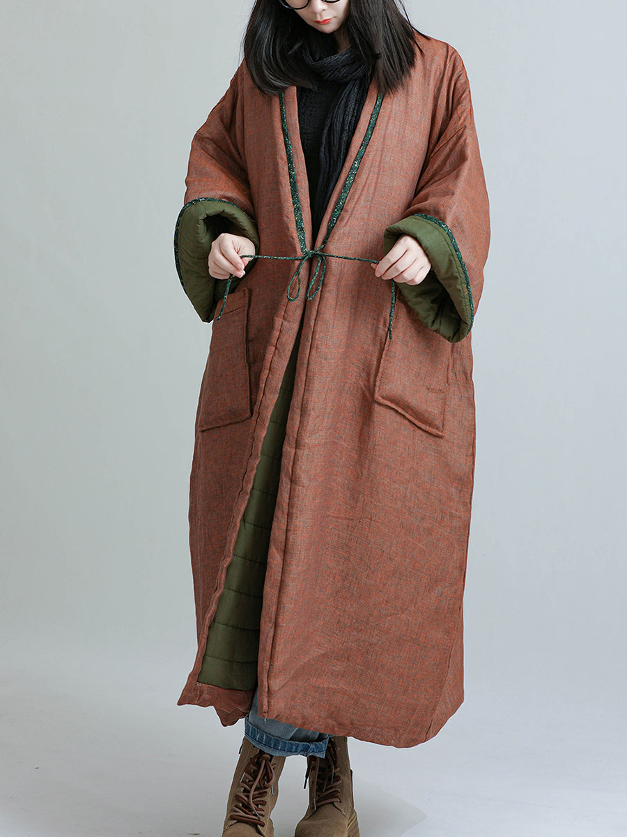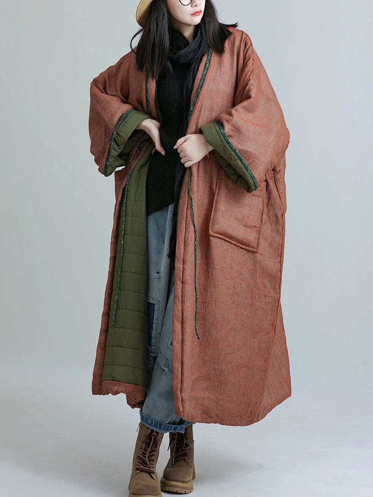 レディース 冬 レトロ ピュアカラー Vネック パッド入りコート