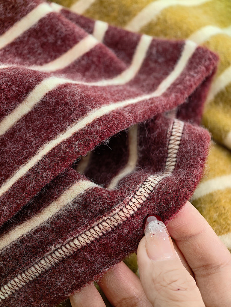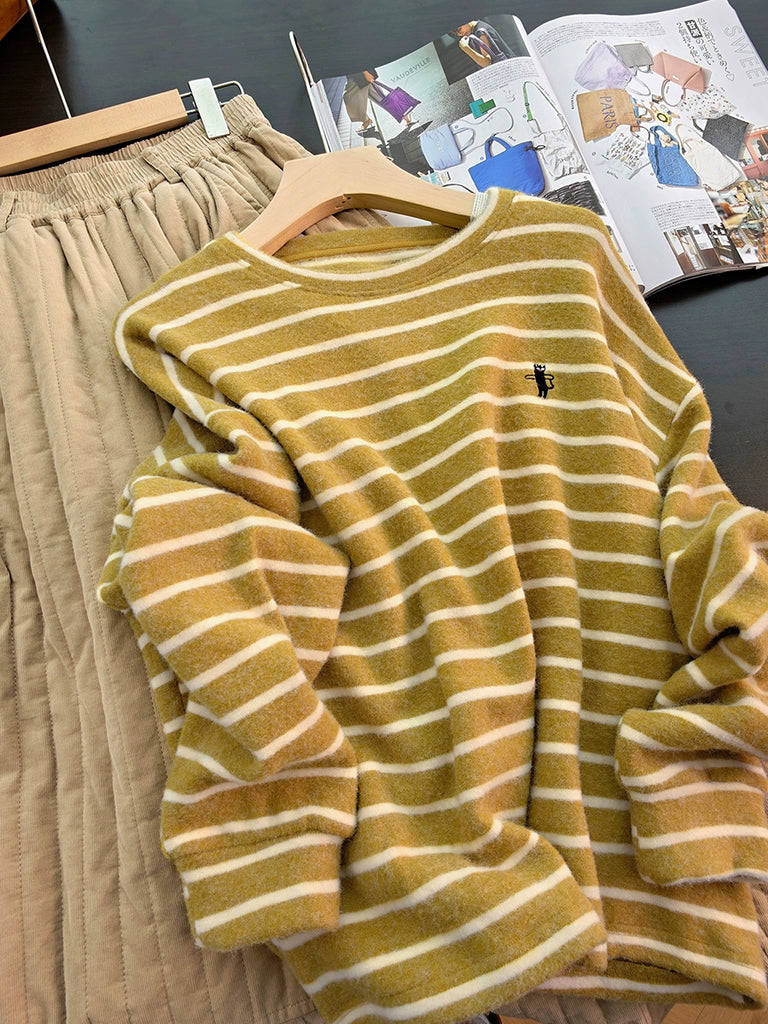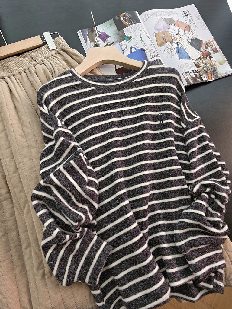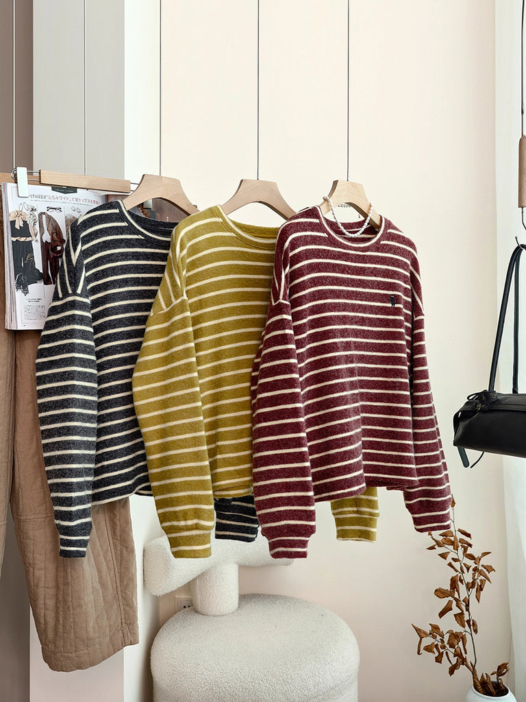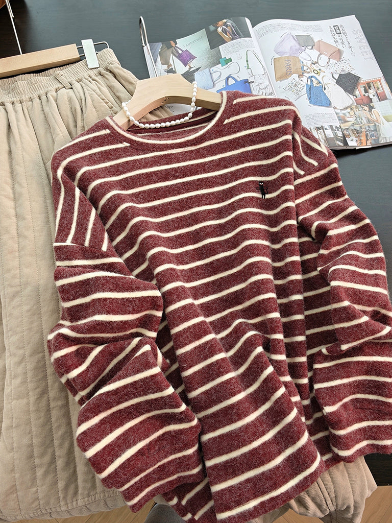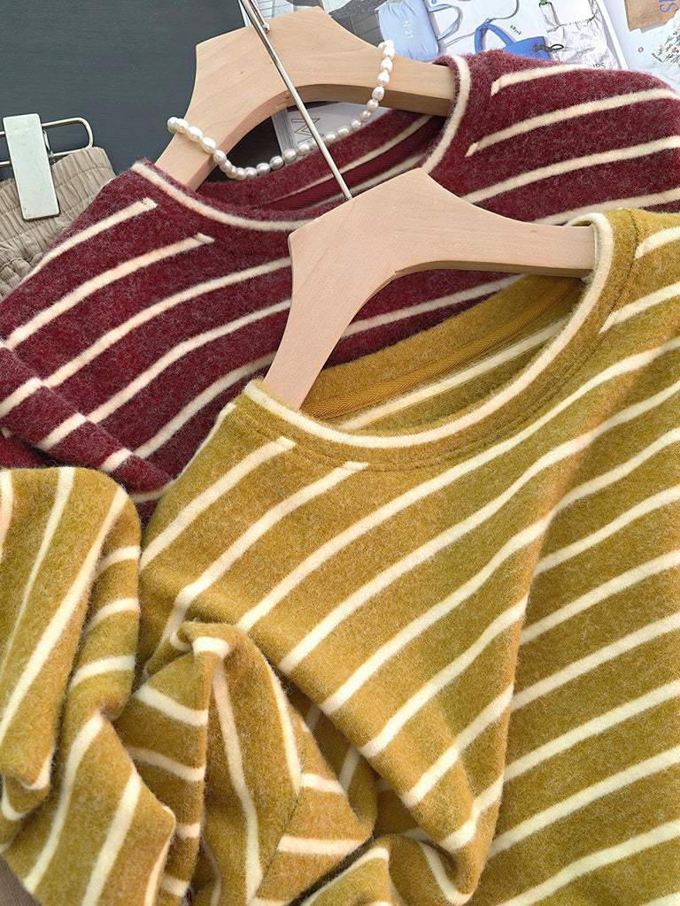 レディース 冬 レトロ ストライプ Oネック ブラウス