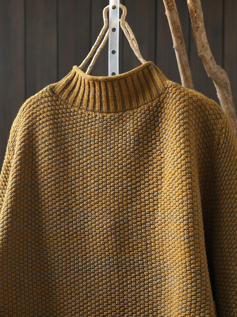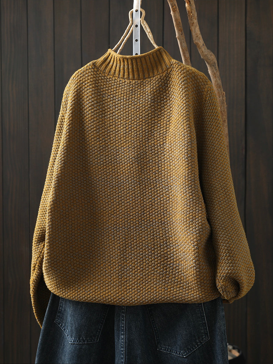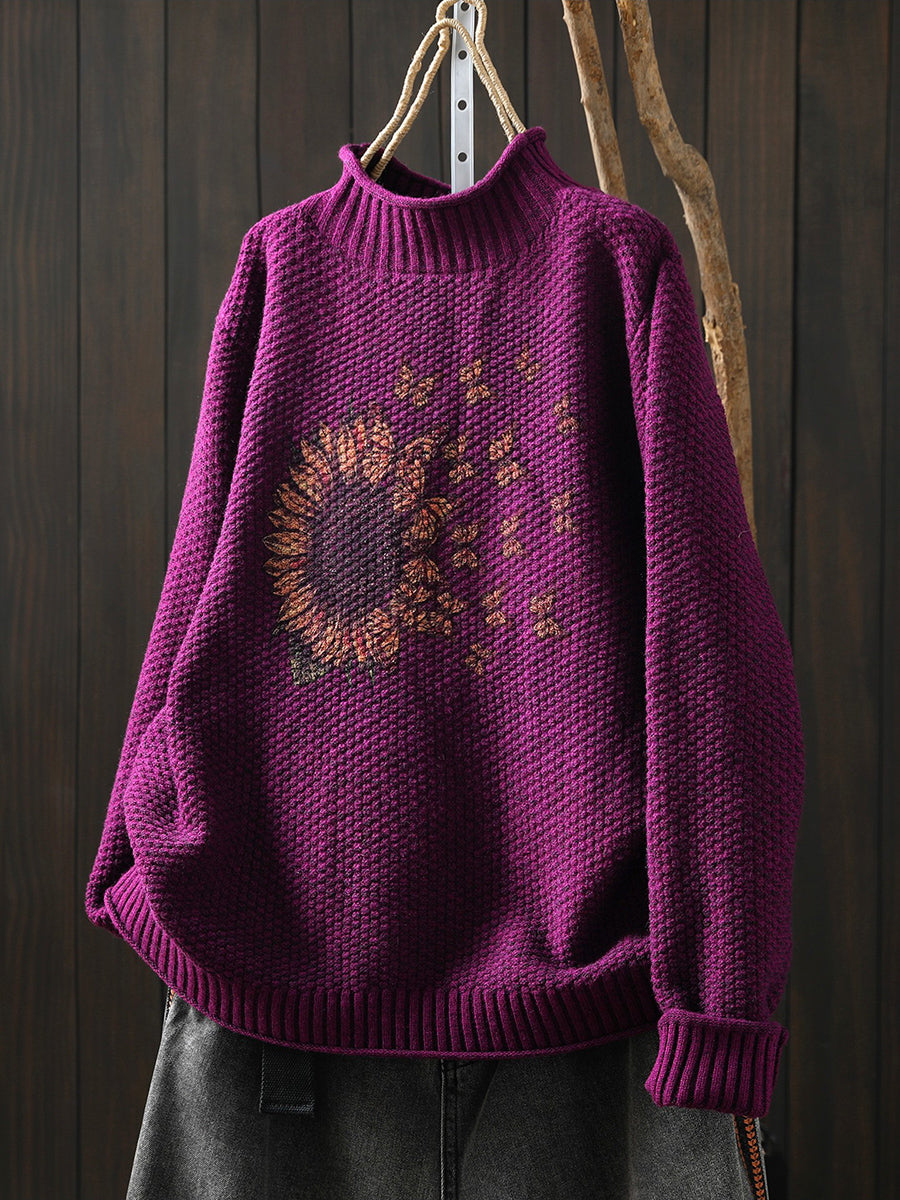 レディース 冬用 ひまわり柄 ニット ハーフタートルネック セーター