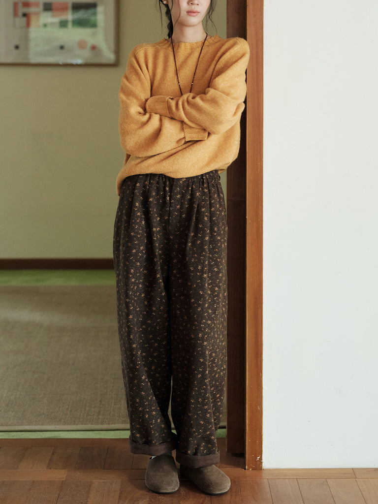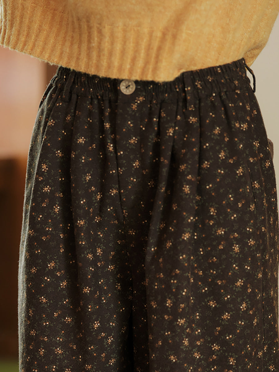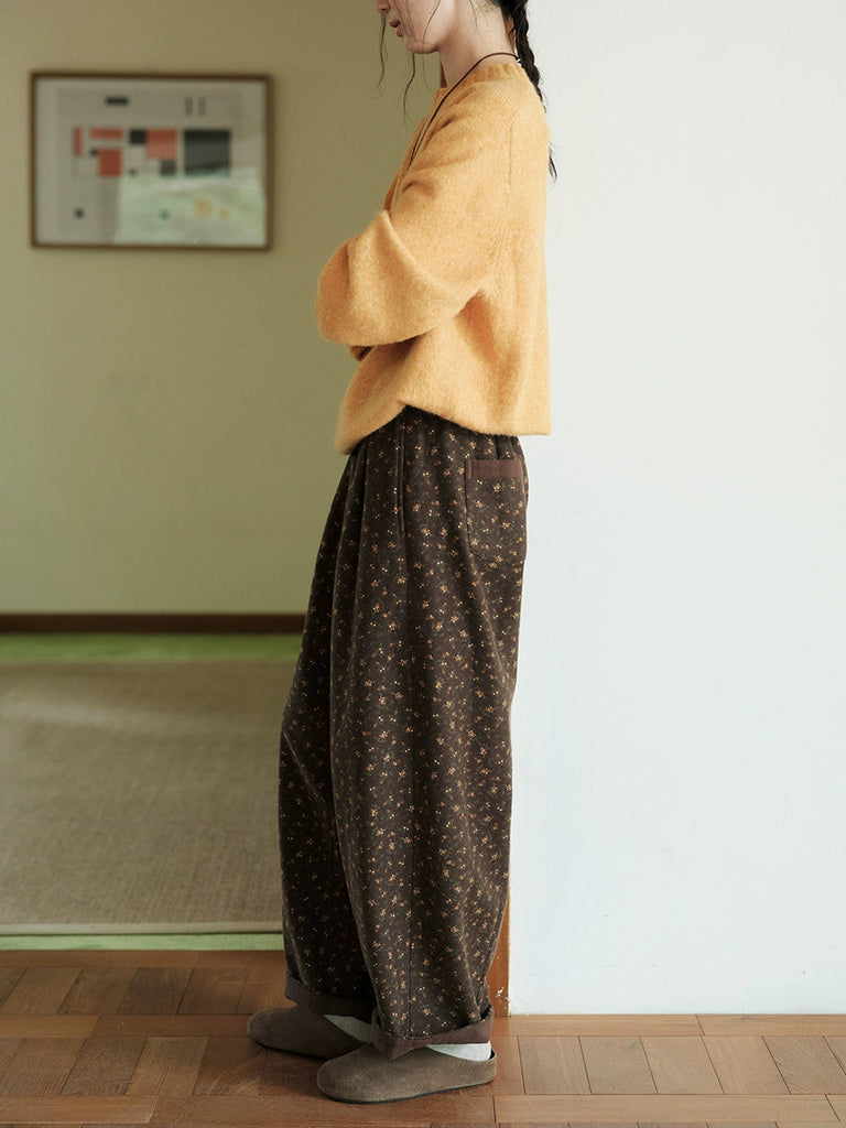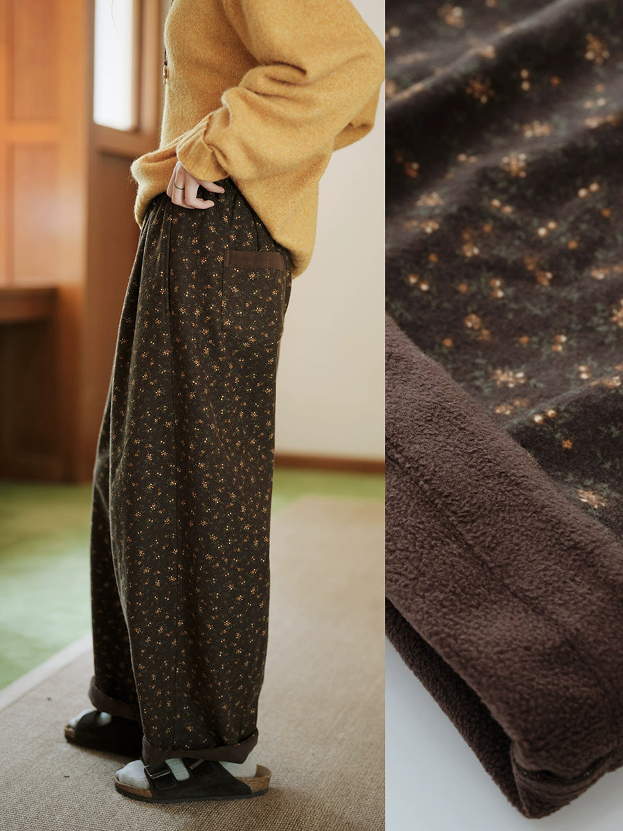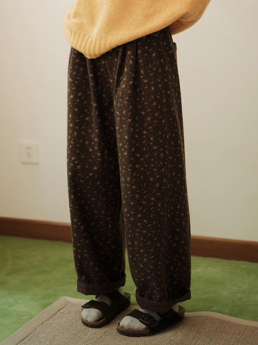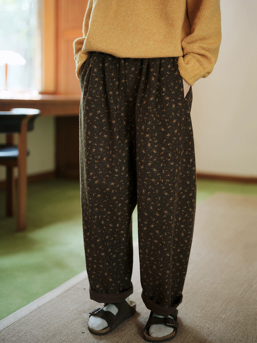 レディース 冬 ヴィンテージ 花柄 フリース裏地 ハーレムパンツ