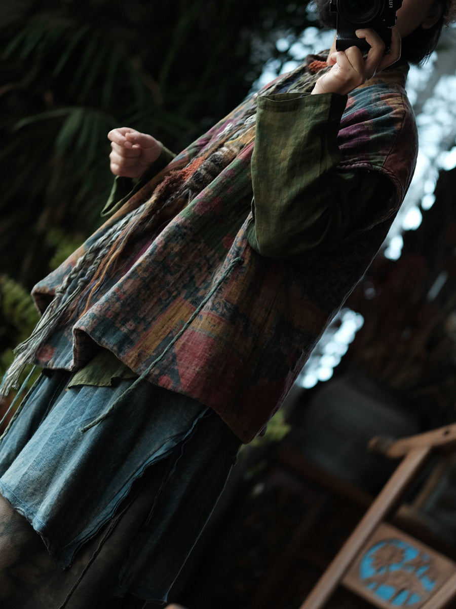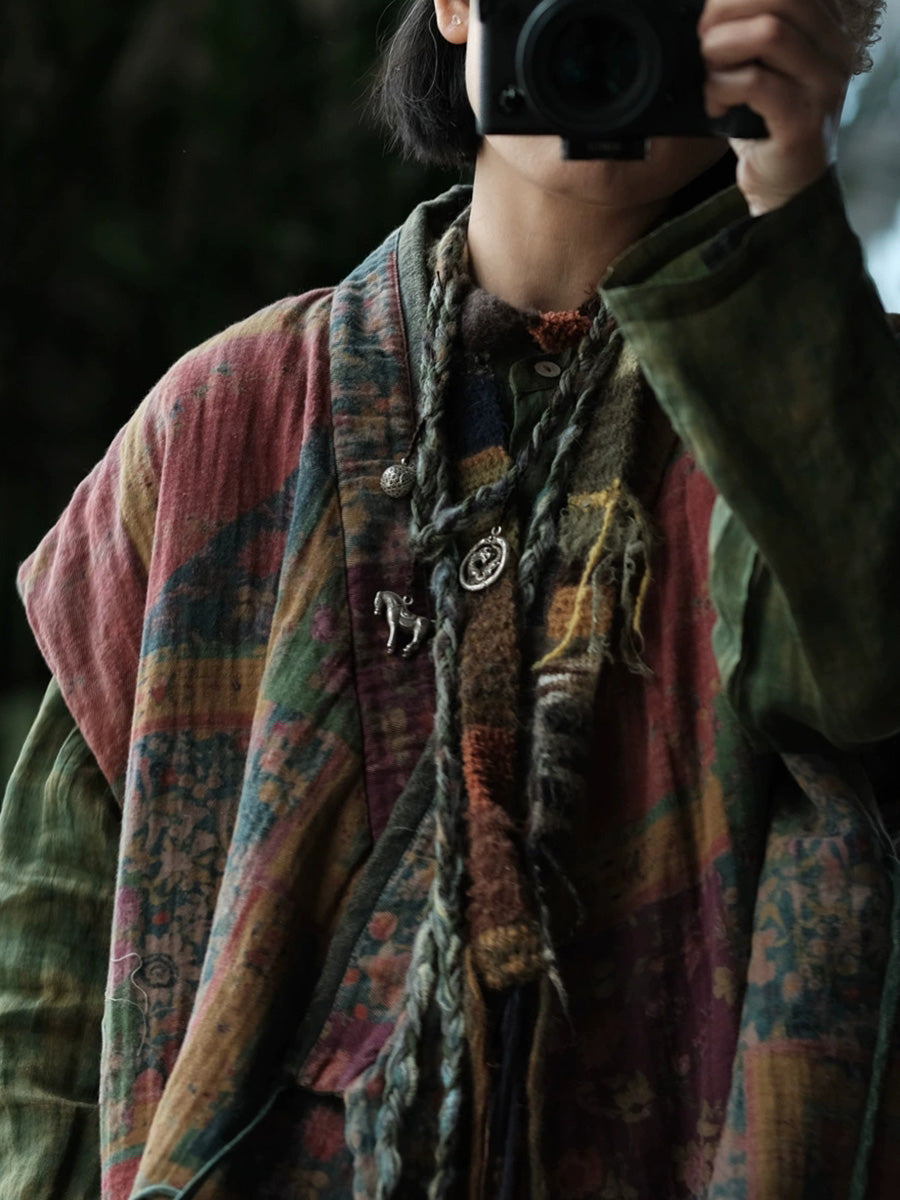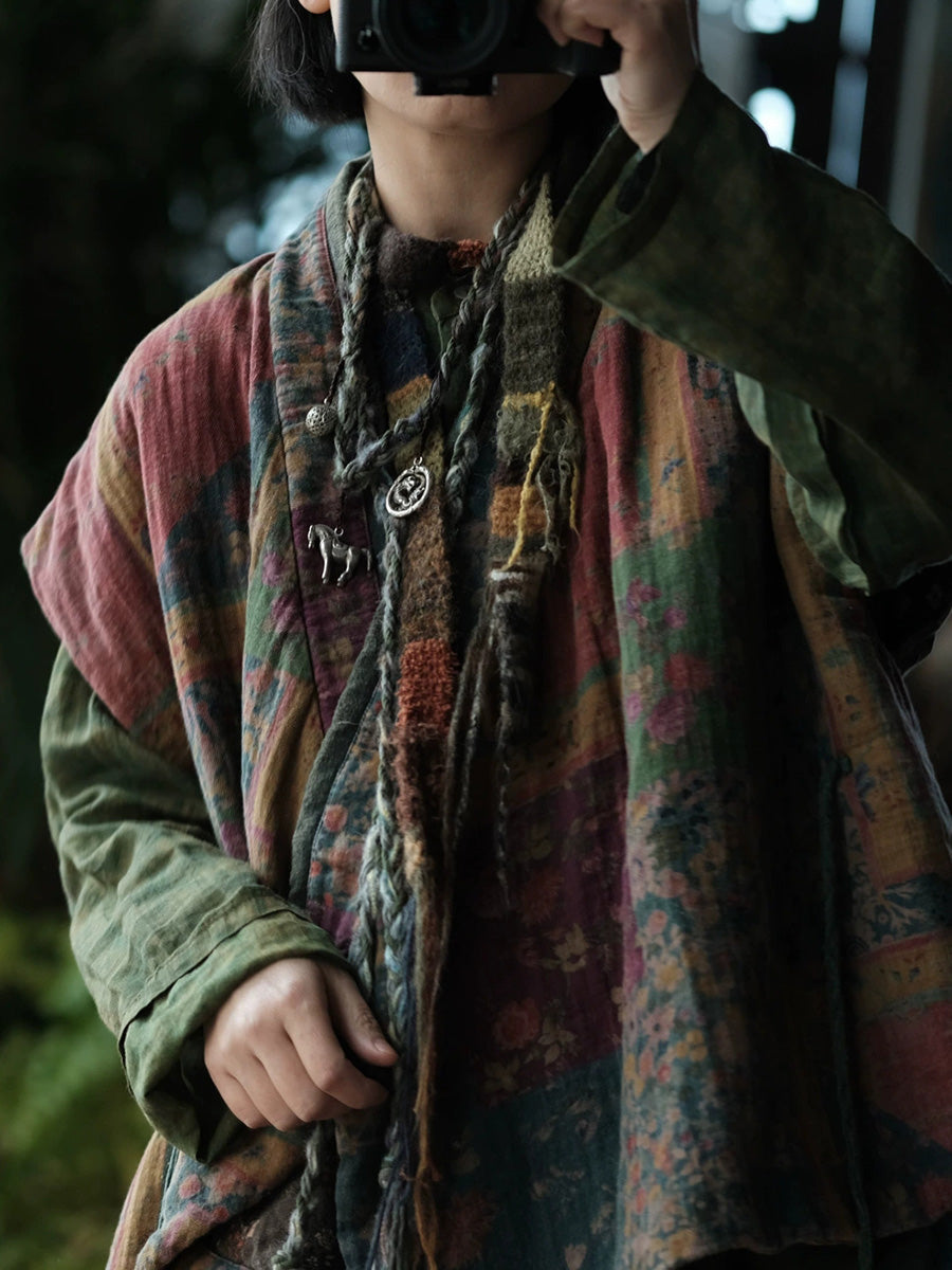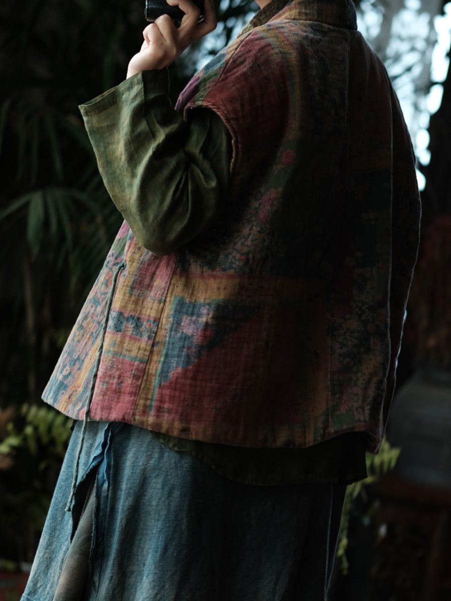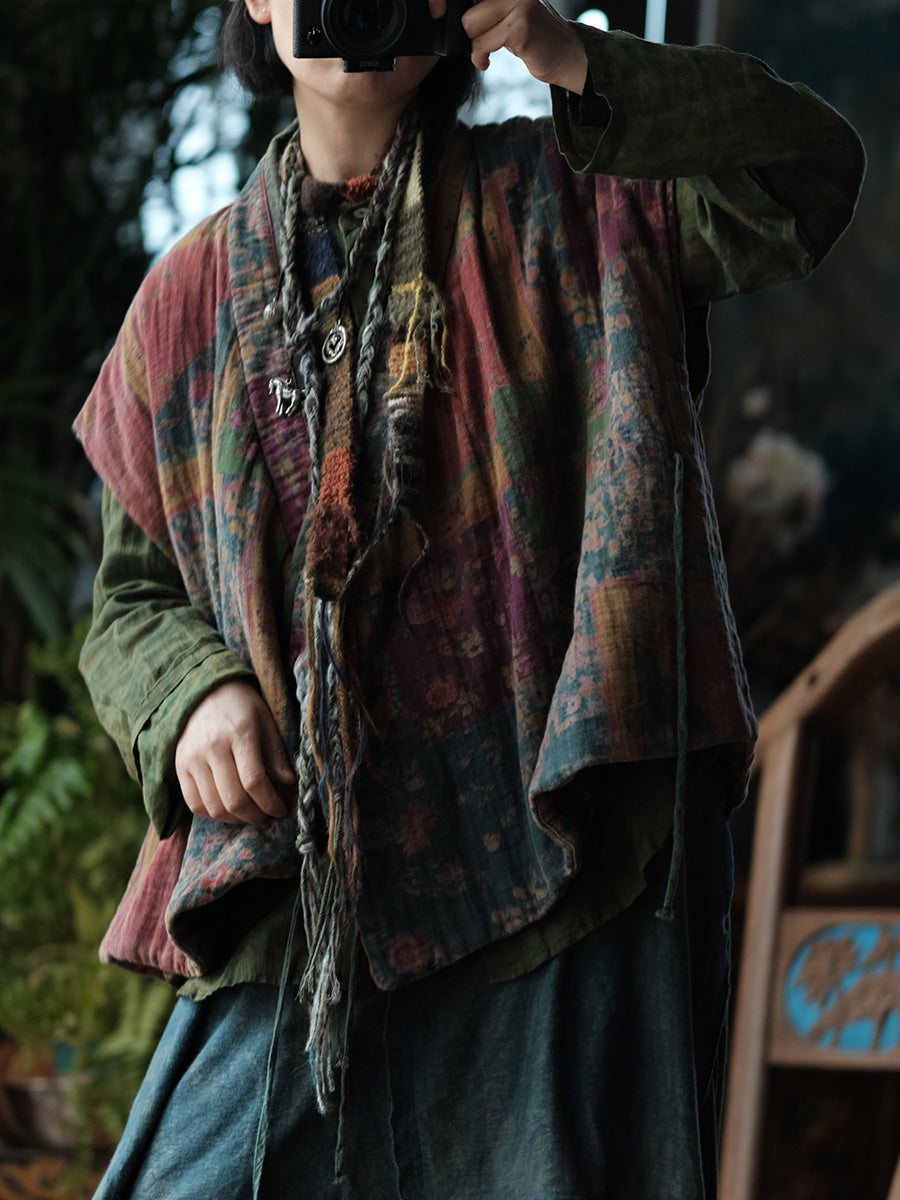 レディース 冬用 ヴィンテージ フローラル スプライス Vネック パッド入りベスト