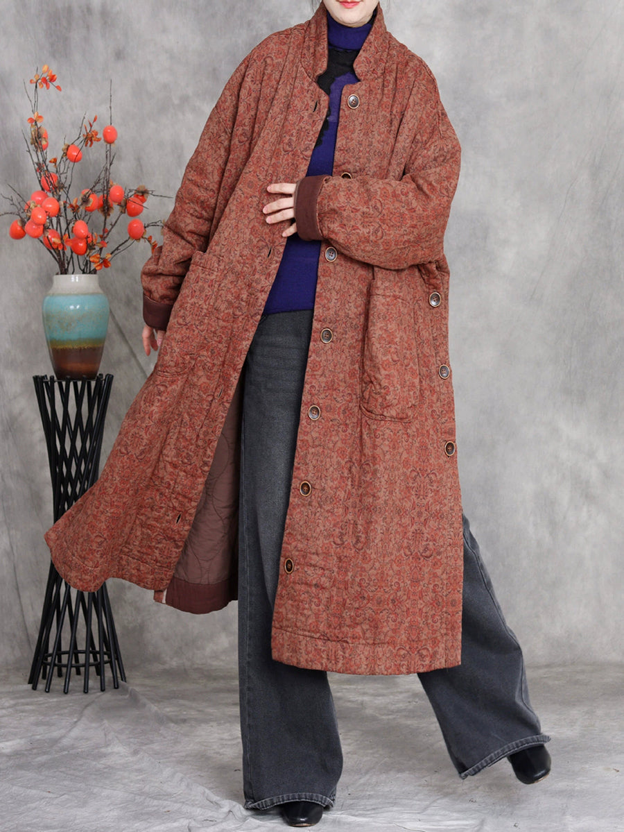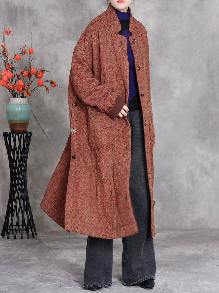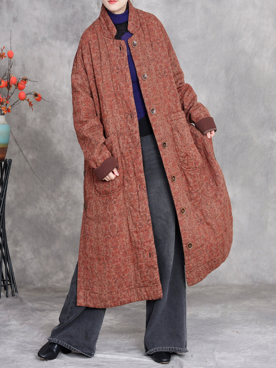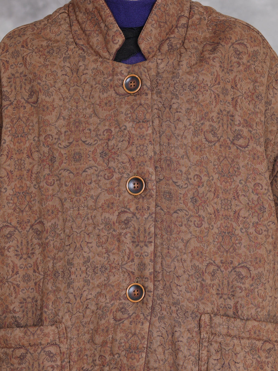 レディース 冬 ヴィンテージ フローラル スタンドカラー パッド入りコート