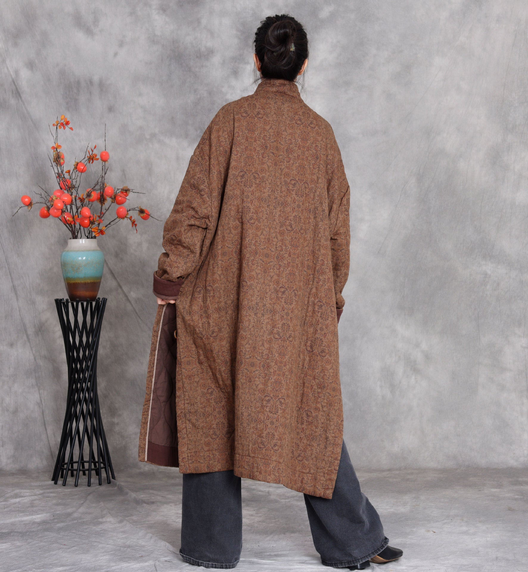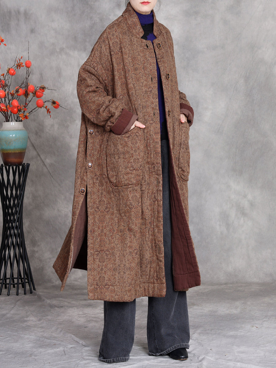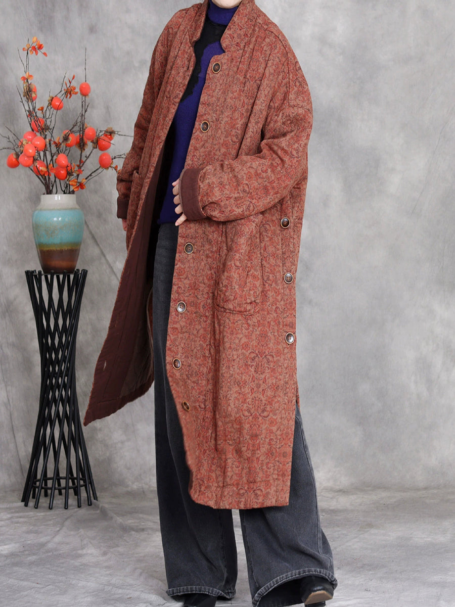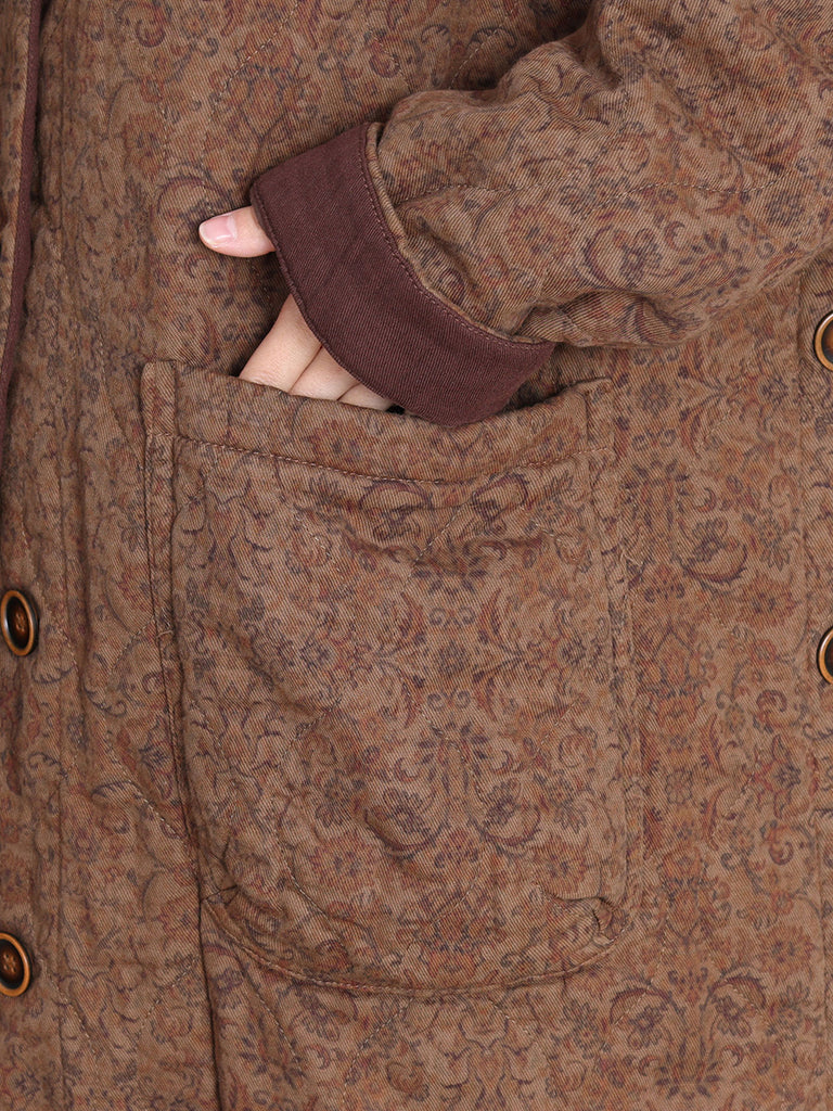 レディース 冬 ヴィンテージ フローラル スタンドカラー パッド入りコート