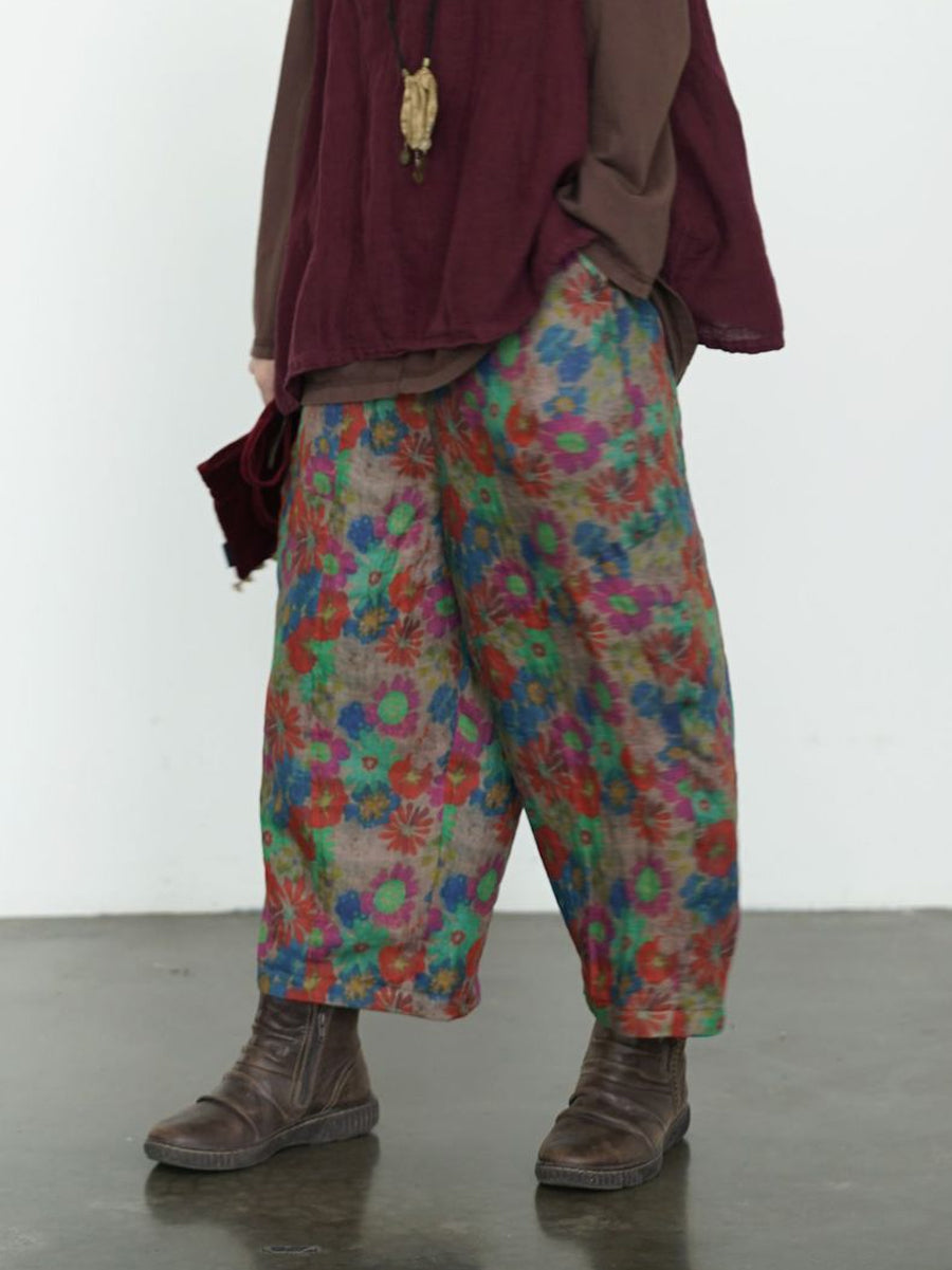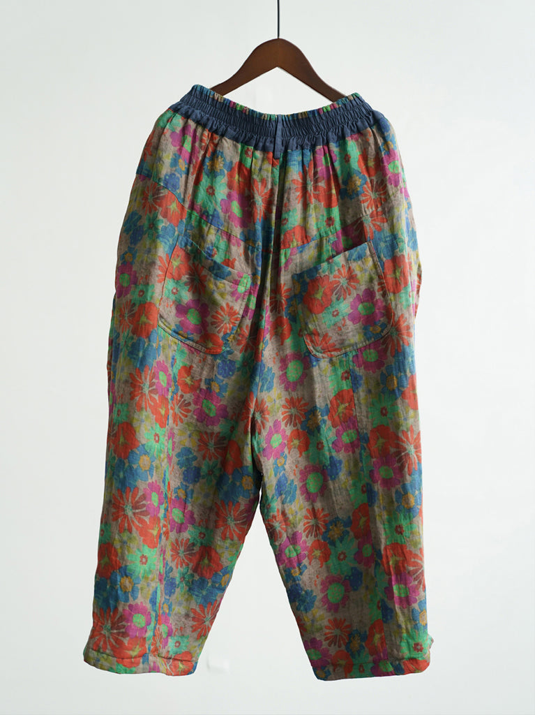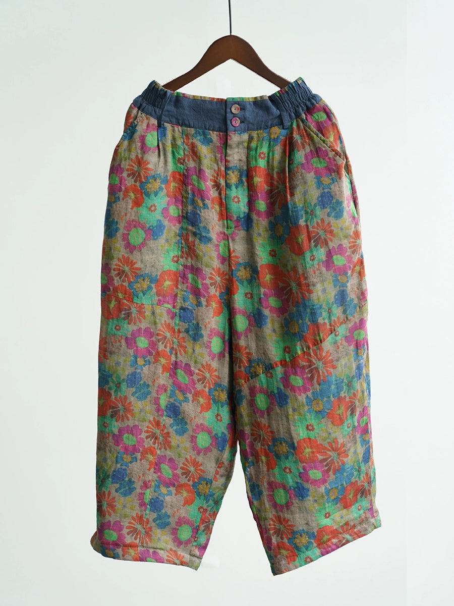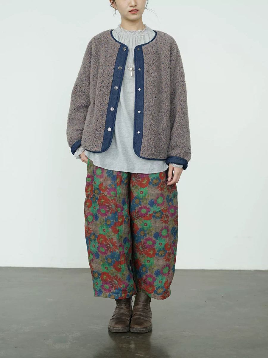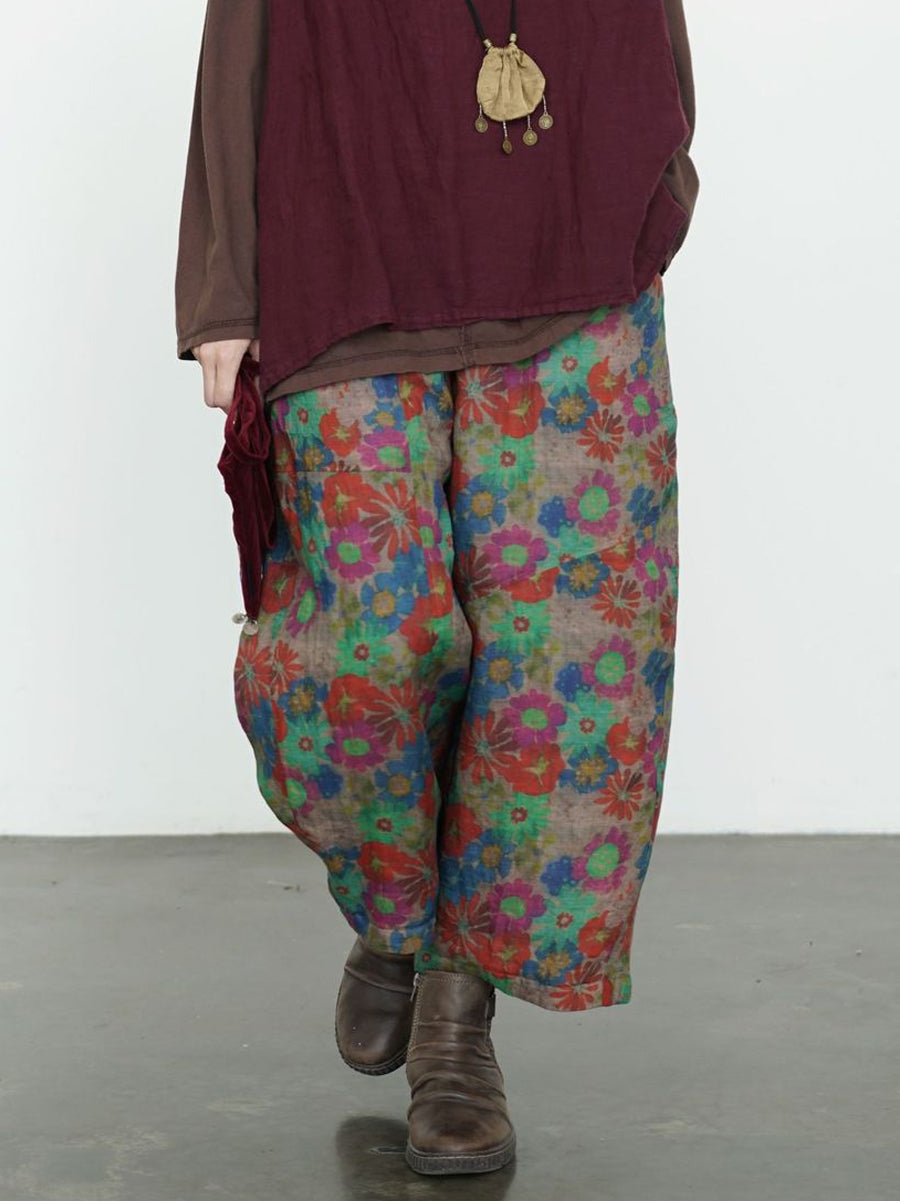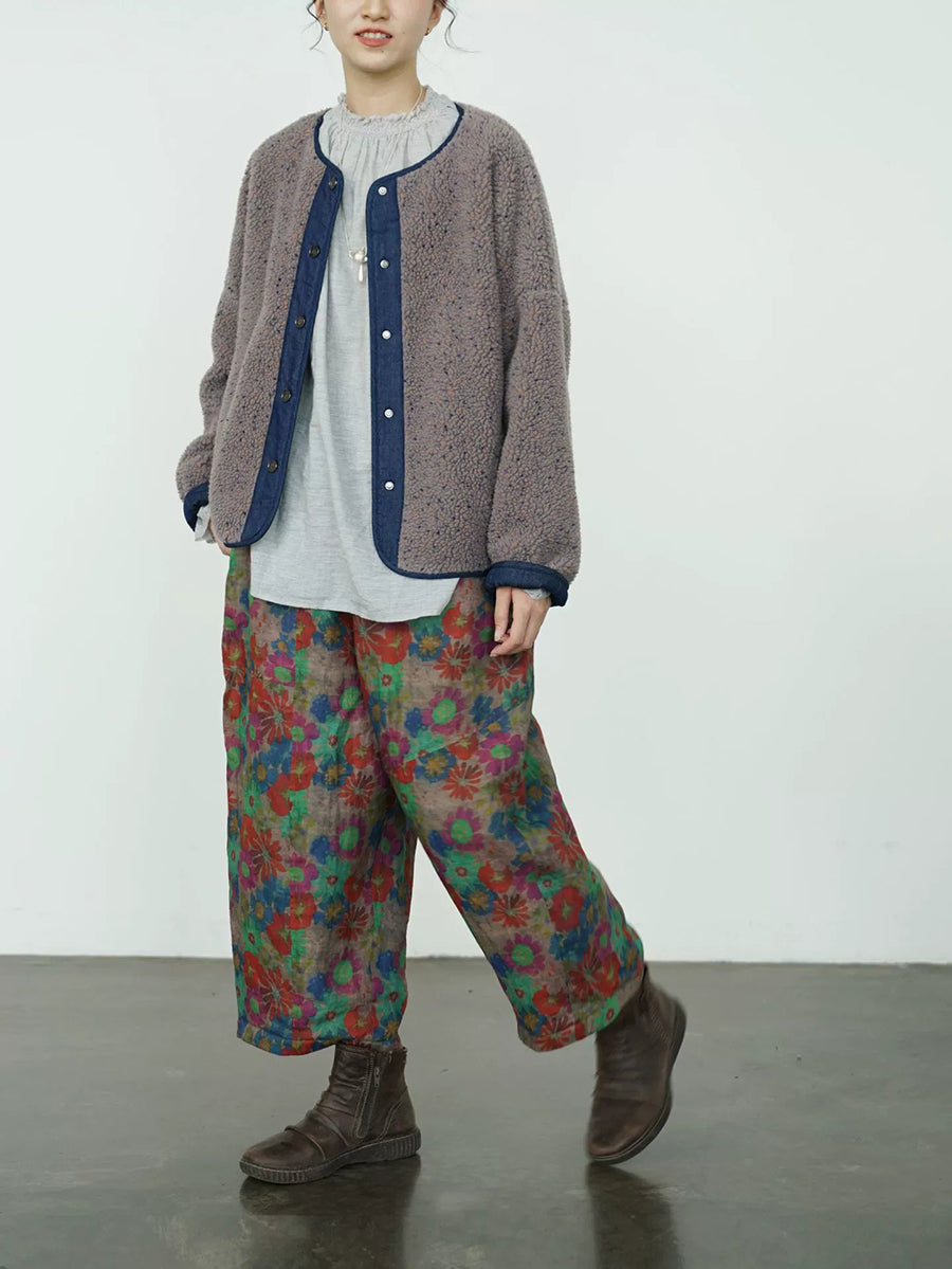 レディース 冬 ヴィンテージ フラワー パッド入り ストレートパンツ