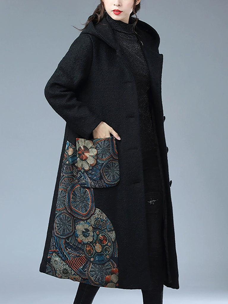 レディース 冬 ヴィンテージ フラワーパッチ パッド入り フード付きコート