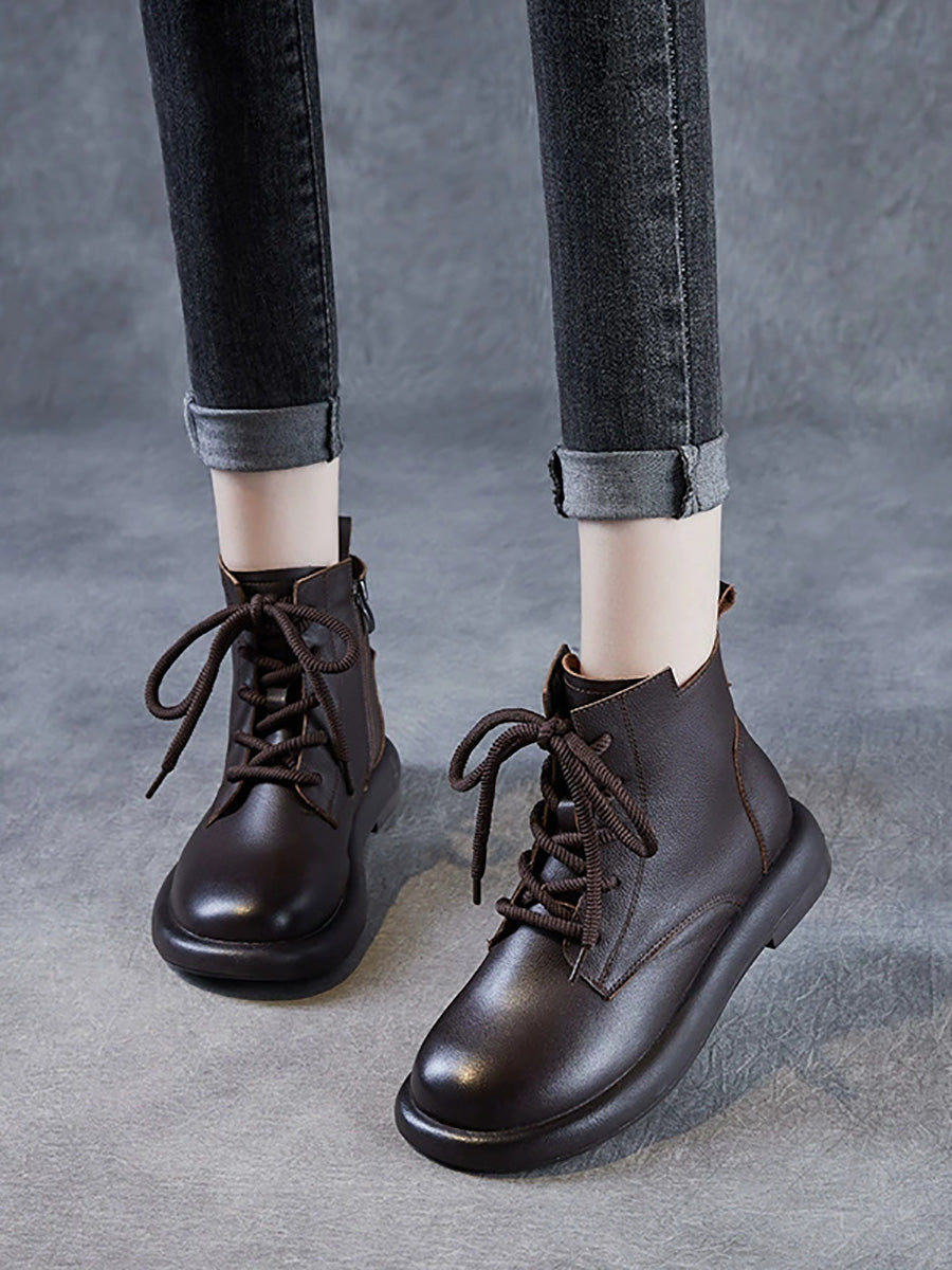 レディース 冬用 ヴィンテージ 本革 アンクルブーツ
