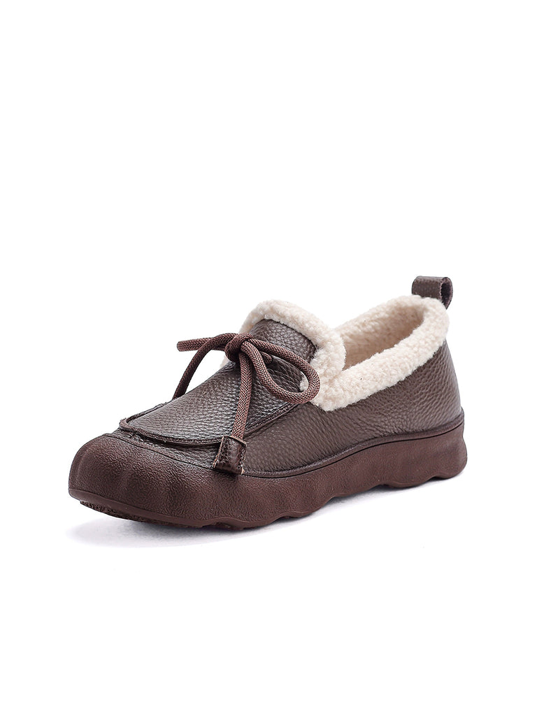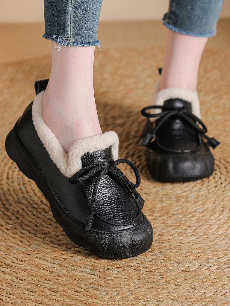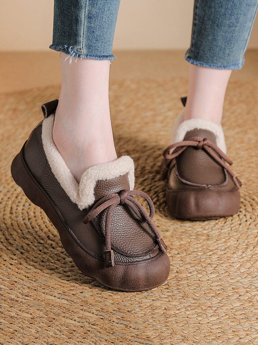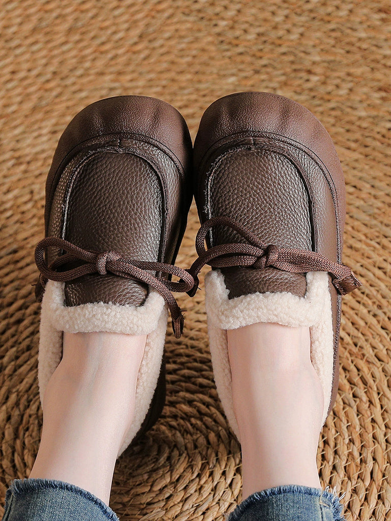レディース 冬用 ヴィンテージレザー フリース裏地シューズ
