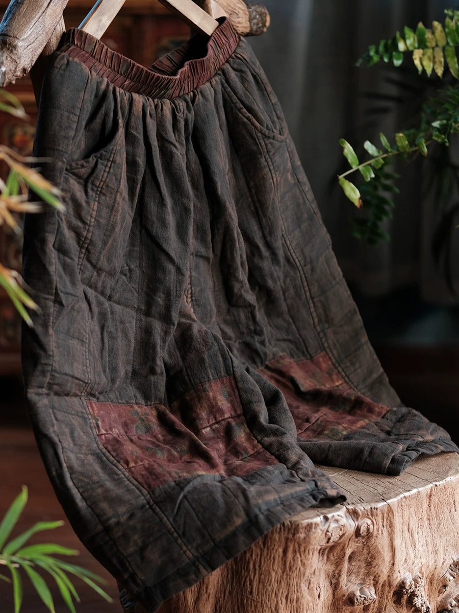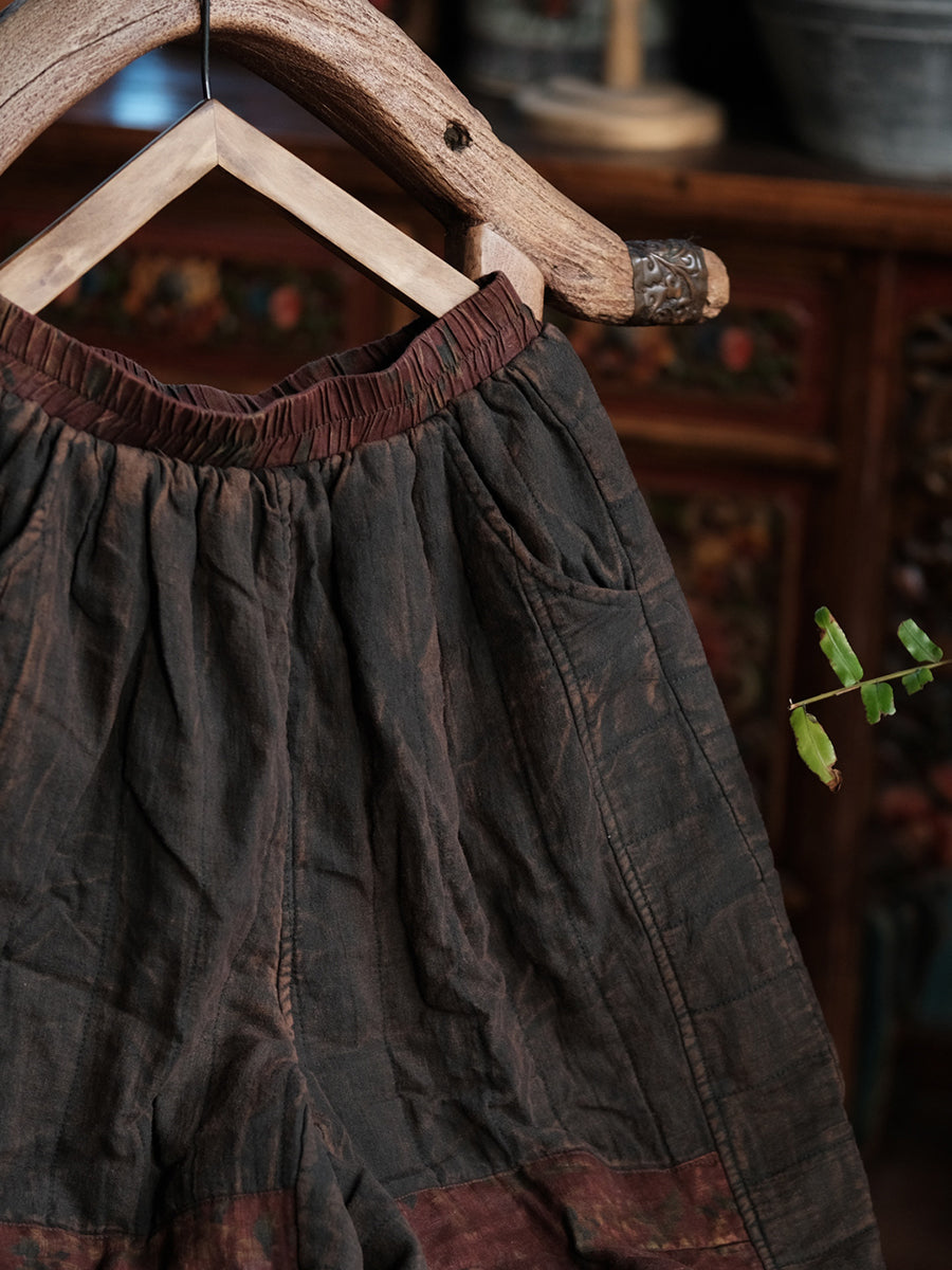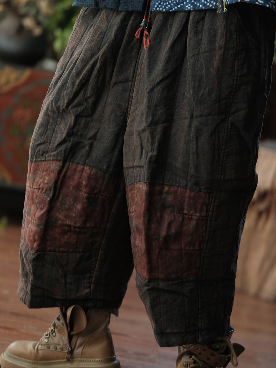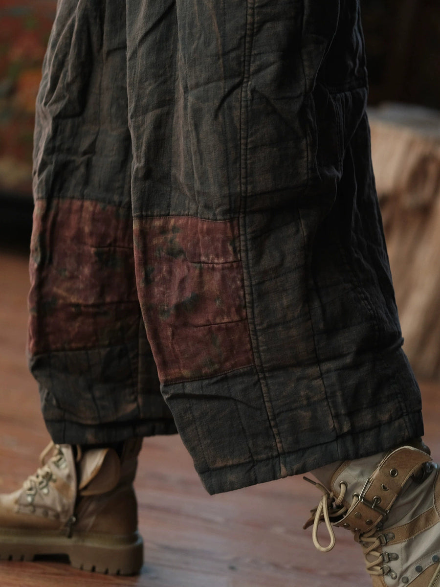 レディース 冬 ヴィンテージ リネン パッチワーク パッド入り ワイドレッグパンツ