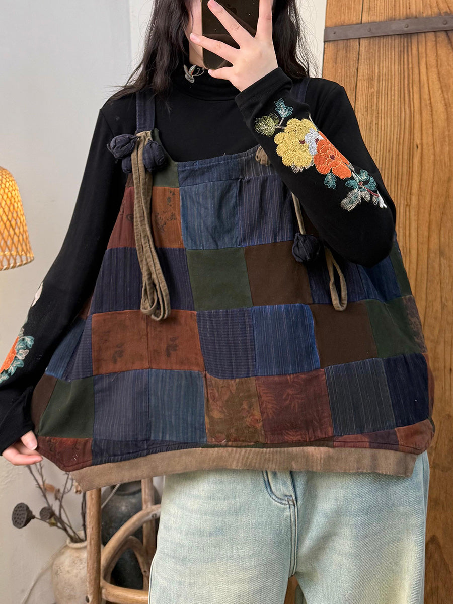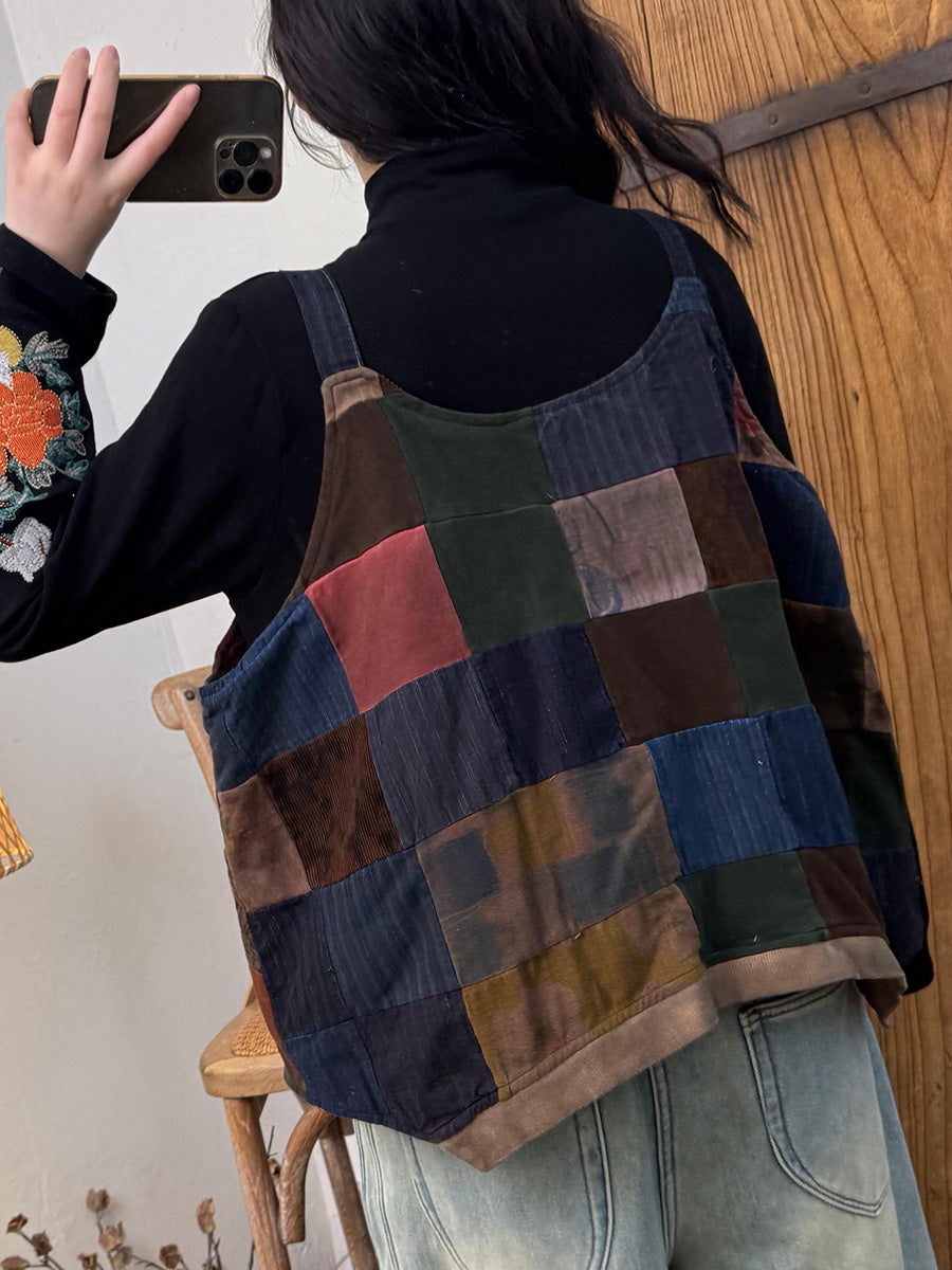 レディース 冬用 ヴィンテージ パッチワーク パッド入りベスト