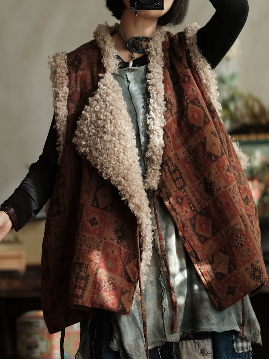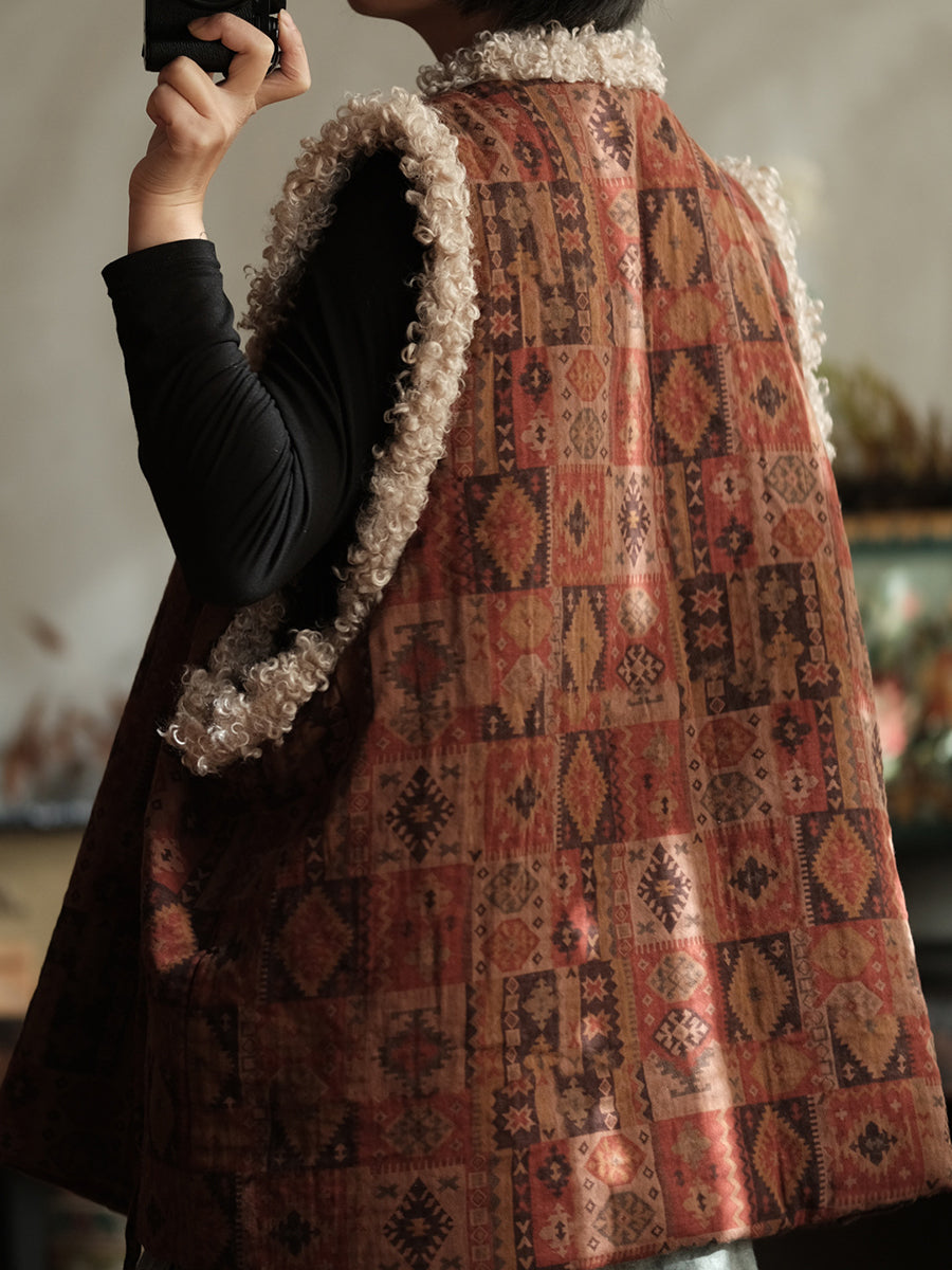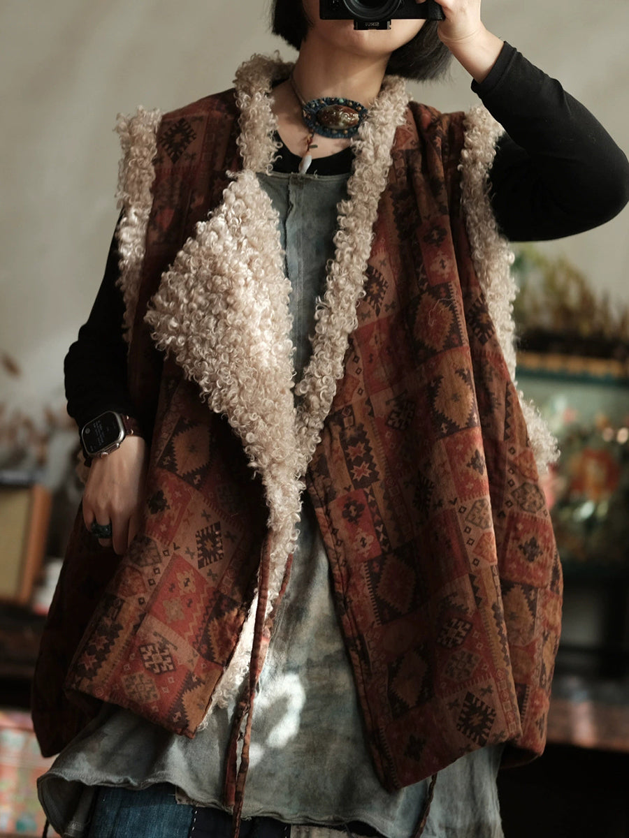 レディース 冬 ヴィンテージ パッチワーク Vネック フリースベスト