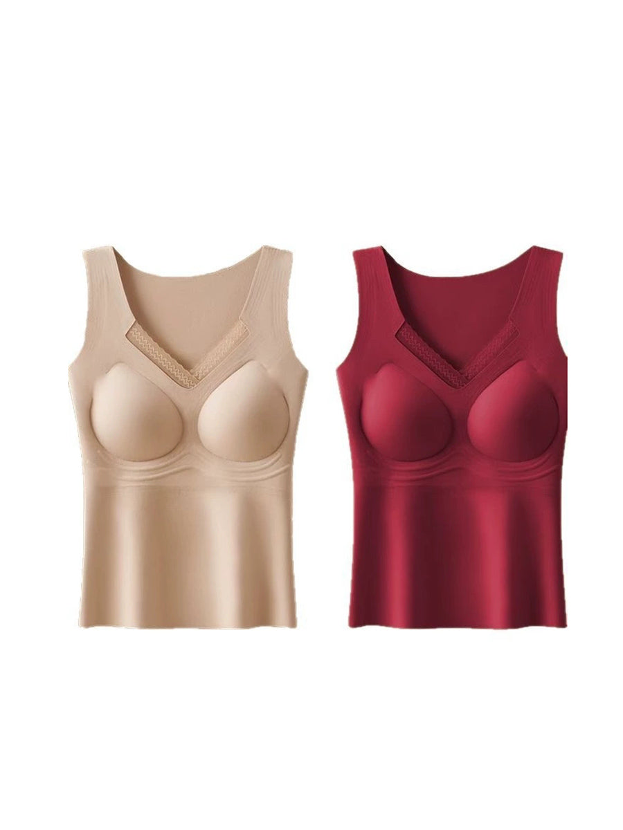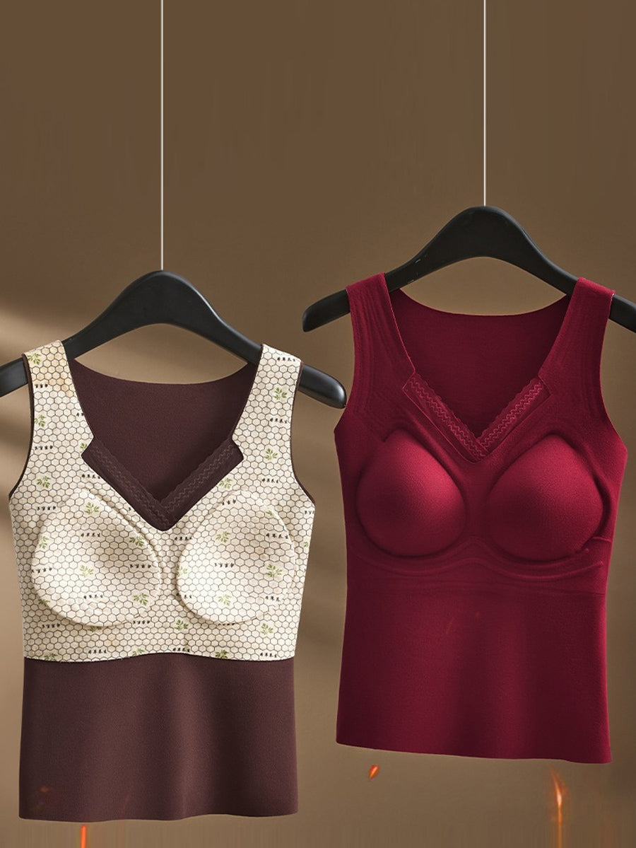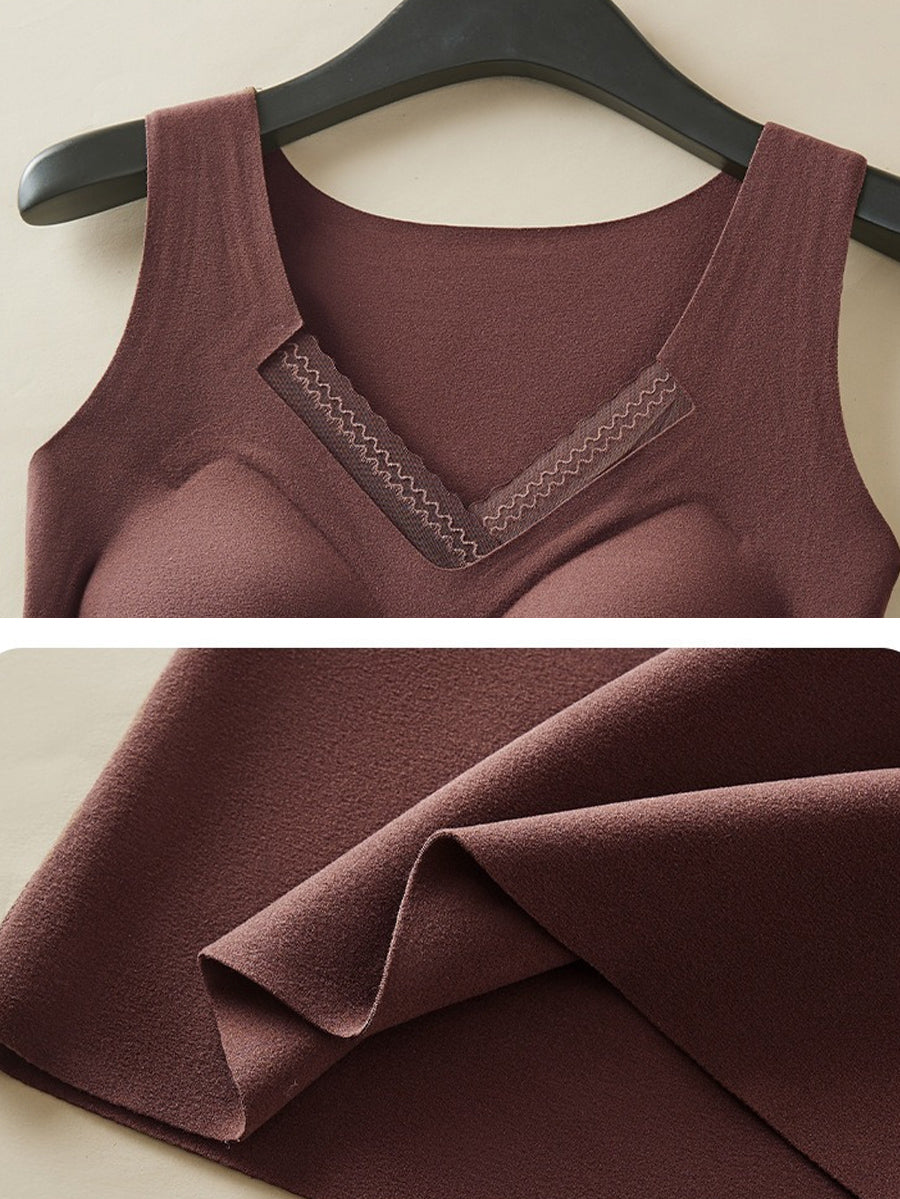 レディース 冬用 暖かい 純色 バーパッド付き ベースベスト